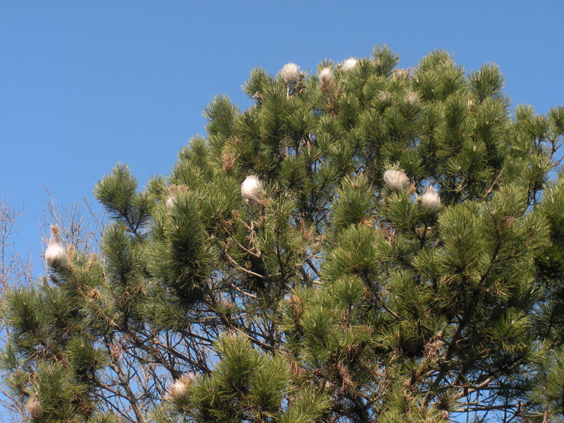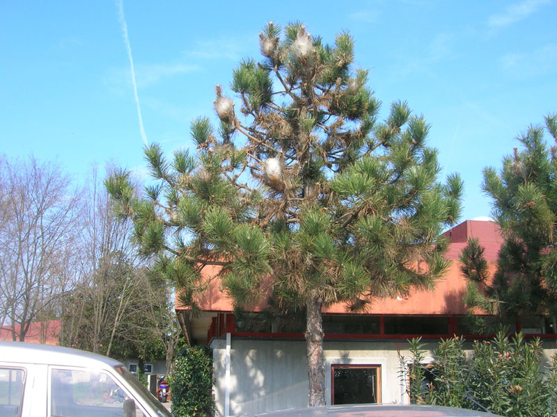 E’ un insetto Lepidottero defogliatore (Traumatocampa pityocampa), che attacca tutte le specie di pino (soprattutto Pinus nigra, Pinus sylvestris) ed alcune specie di cedro. L’insetto compie una generazione all’anno. Le larve, che compaiono nella seconda metà di agosto, hanno abitudini gregarie e si spostano in gruppo, per alimentarsi a spese degli aghi.